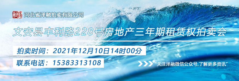 - [拍賣公告]文安縣豐利路228號房地產(chǎn)三年期租賃權(quán)拍賣公告20211210