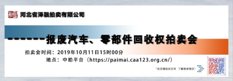 - 拍賣公告受委托,我公司定于2019年10月11日15時(shí)00分在中拍平臺(tái)(https://paimai.caa123.org.cn/)公開拍賣保定長安客車制造有限公司在汽車生產(chǎn)中產(chǎn)生的報(bào)廢汽車(含發(fā)動(dòng)機(jī))、報(bào)廢汽車(不含發(fā)動(dòng)機(jī))、報(bào)廢零部件的回收權(quán)(不接受現(xiàn)場競拍)。自公告見報(bào)之日起在…