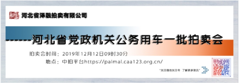 - [拍賣公告]河北省黨政機(jī)關(guān)公務(wù)用車拍賣公告20191212